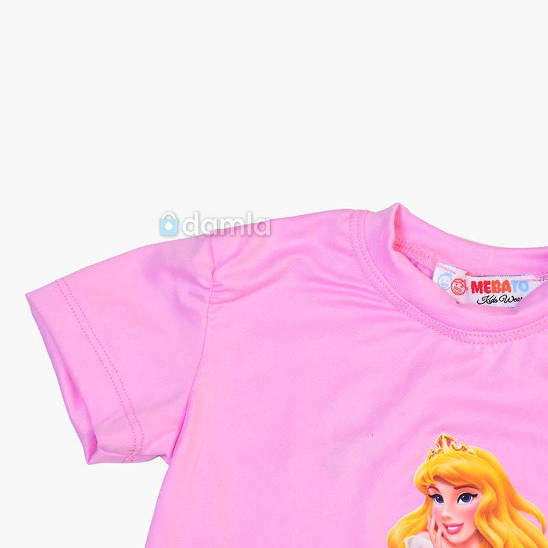 • Aýratynlyklary: Gyz çagalar üçin açyk gülgüne reňkli komplekt eşik. Kelte ýeňli, tegelek ýakaly futbolka. Futbolkanyň ýüzünde şa gyzynyň şekili bilen bezelen. Bili rezinli şortik. Gündelik geýmek üçin rahat we ajaýyp saýlaw.