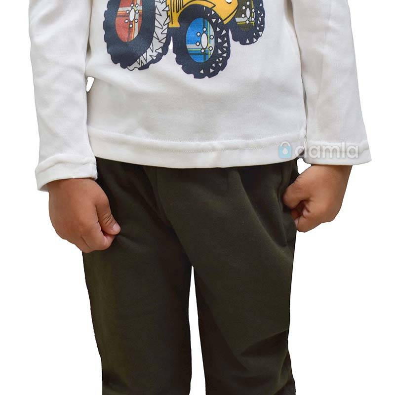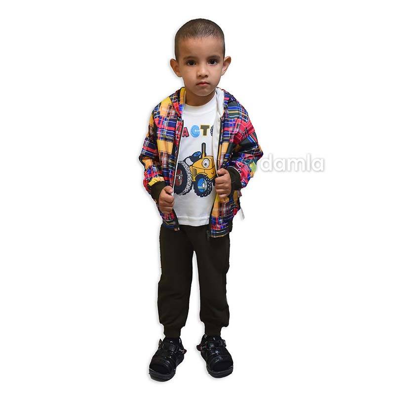 • Aýratynlyklary: Oglan çagalar üçin dürli reňkli 3-li komplekt eşik, tegelek ýakaly we uzyn ýeňli futbolkasy, haki reňkli, bili rezinli balagy we ýeňil kurtgasy bar. Futbolkanyň ýüzünde traktor şekili we dürli reňkli TRACTOR ýazgy bilen bezelen. Ýeňil materialdan dürli reňkli, kapuşonly kurtgasy bar. Ýumşak we rahat materialy ony gündelik geýmek üçin ajaýyp saýlaw edýär.