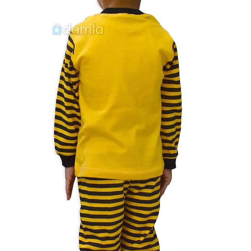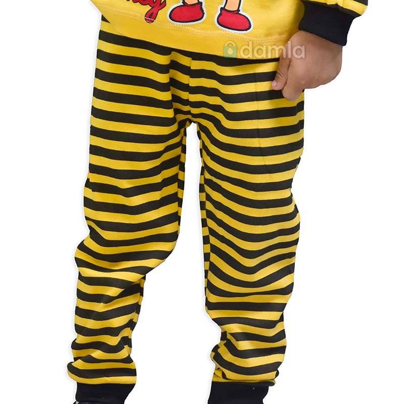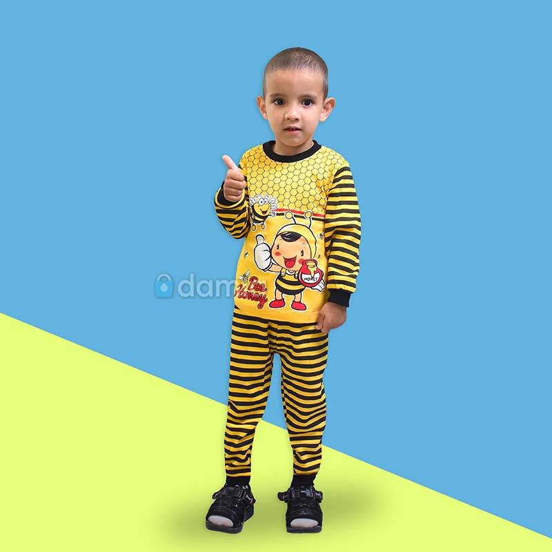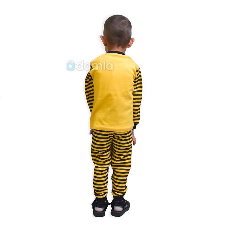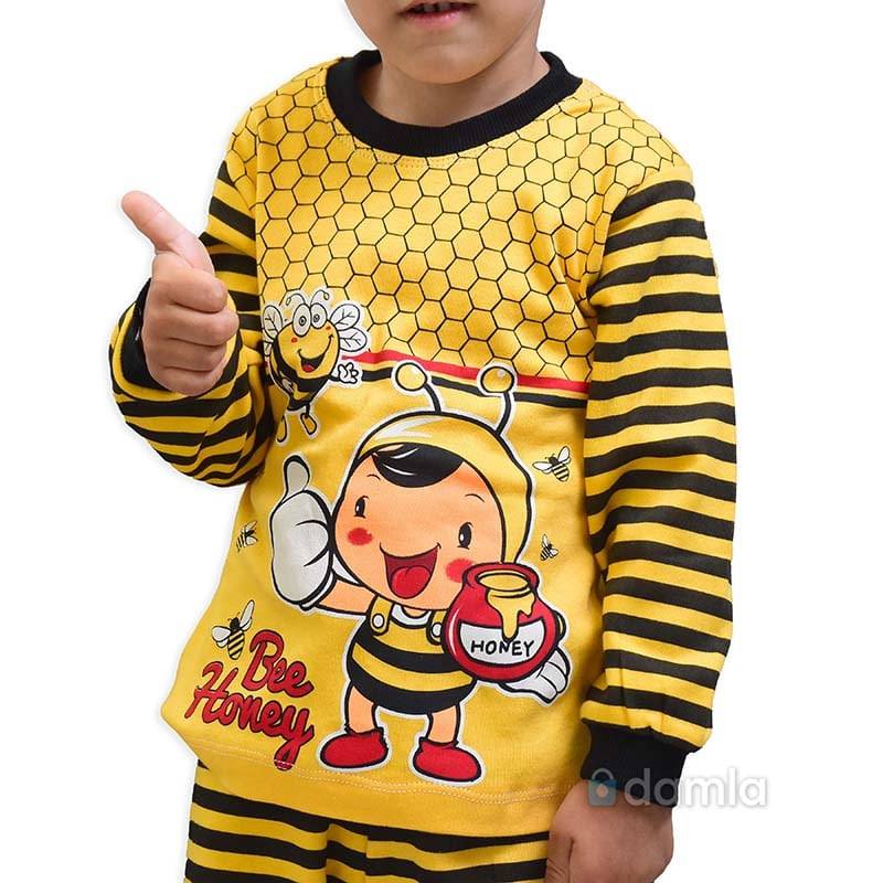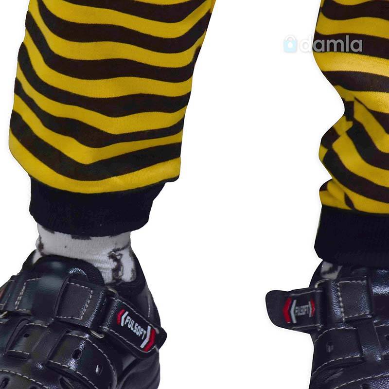 • Aýratynlyklary: Oglan çagalar üçin sary, gara reňkli komplekt eşik, tegelek ýakaly, uzyn ýeňli futbolkasy, sary, gara reňkli, bili rezinli balagy, balagynyň ýüzi sary, gara reňki bilen bezelen. Futbolkanyň ýüzünde arynyň şekili we gyzyl reňkden BEE HONEY ýazgy bilen bezelen. Futbolkanyň ýeňi sary, gara reňkler bilen bezelen. Ýumşak we rahat materialy ony gündelik geýmek üçin ajaýyp saýlaw edýär.