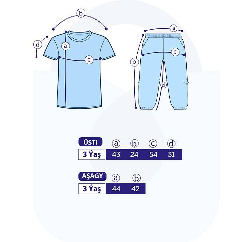 • Aýratynlyklary: Gyz çagalar üçin gyzyl reňkli komplekt eşik. Uzyn ýeňli, tegelek ýakaly, arkasy uzyn futbolka. Futbolkanyň ýüzünde şa gyzynyň şekili bilen bezelen. Bili rezinli balak. Gündelik geýmek üçin rahat we ajaýyp saýlaw.