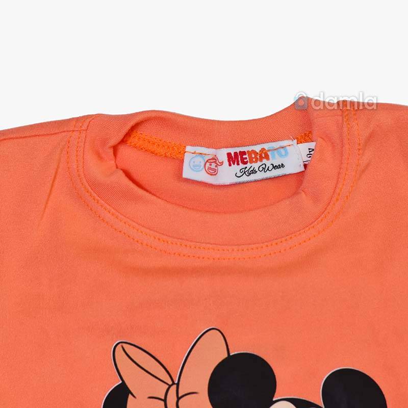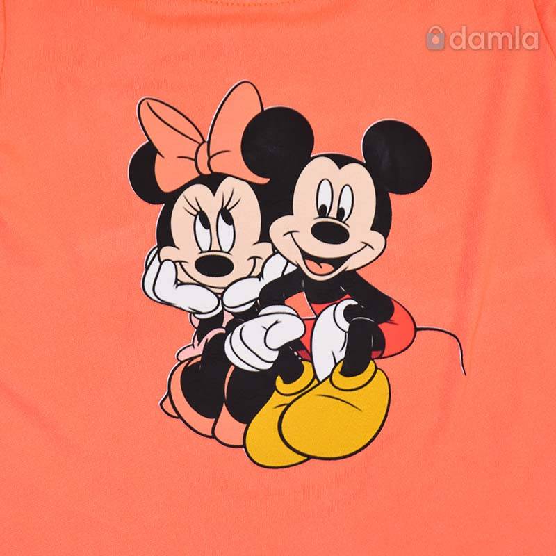 • Aýratynlyklary: Gyz çagalar üçin mämişi reňkli komplekt eşik. Uzyn ýeňli, tegelek ýakaly, arkasy uzyn futbolka. Futbolkanyň ýüzünde "Mickey Mouse" multiifilimindäki Mickey we Minnie gahrymanlarynyň şekili bilen bezelen. Bili rezinli balak. Gündelik geýmek üçin rahat we ajaýyp saýlaw.