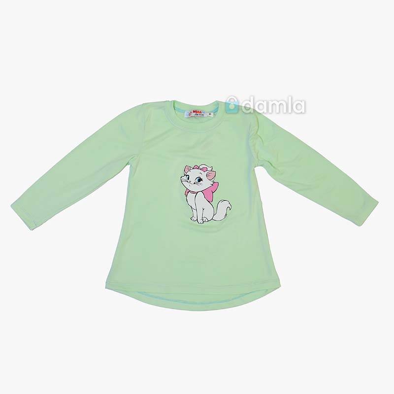 • Aýratynlyklary: Gyz çagalar üçin açyk ýaşyl reňkli komplekt eşik. Uzyn ýeňli, tegelek ýakaly, arkasy uzyn futbolka. Futbolkanyň ýüzünde pişigiň şekili bilen bezelen. Bili rezinli balak. Gündelik geýmek üçin rahat we ajaýyp saýlaw.