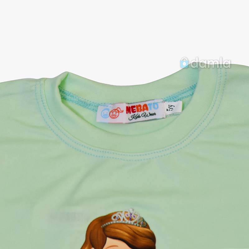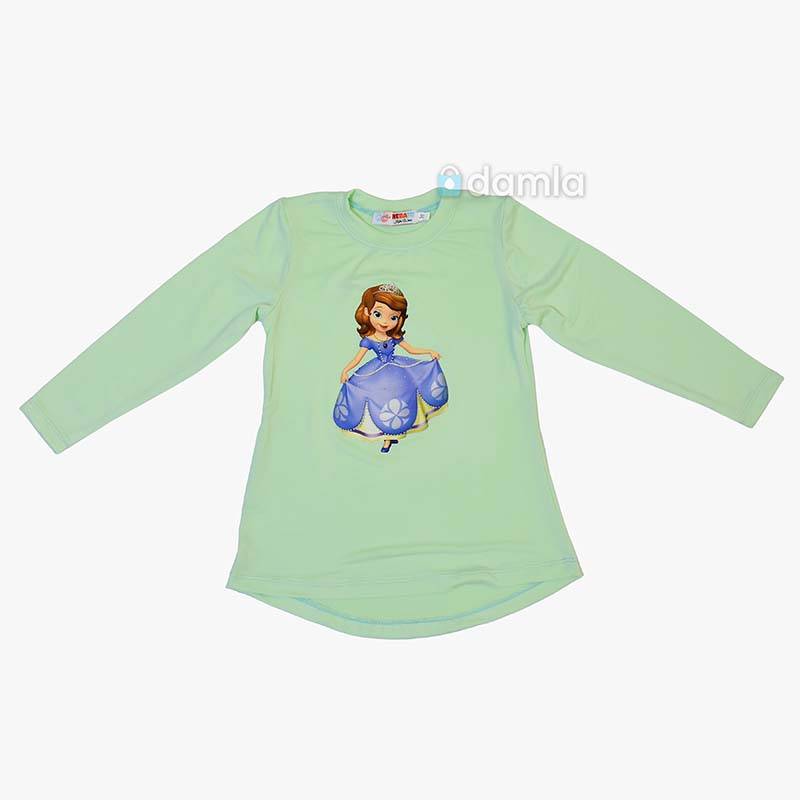 • Aýratynlyklary: Gyz çagalar üçin açyk ýaşyl reňkli komplekt eşik. Uzyn ýeňli, tegelek ýakaly, arkasy uzyn futbolka. Futbolkanyň ýüzünde "Şa gyzy Sofiýa" multiifilimindäki Sofiýa şa gyzynyň şekili bilen bezelen. Bili rezinli balak. Gündelik geýmek üçin rahat we ajaýyp saýlaw.