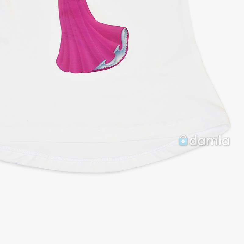 • Aýratynlyklary: Gyz çagalar üçin ak reňkli komplekt eşik. Uzyn ýeňli, tegelek ýakaly, arkasy uzyn futbolka. Futbolkanyň ýüzünde şa gyzynyň şekili bilen bezelen. Bili rezinli balak. Gündelik geýmek üçin rahat we ajaýyp saýlaw.