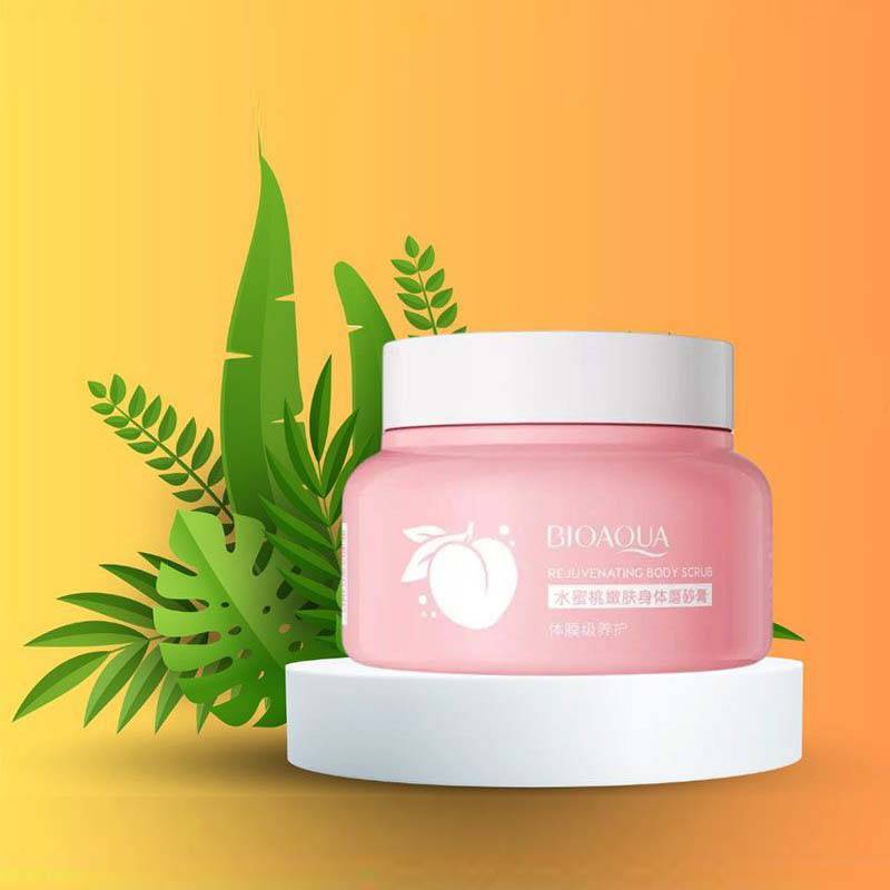 • Aýratynlyklary: BIOAQUA Peach Purifying Body Scrub beden skraby diňe bir bedeniň öli öýjükli gabygy sypyrylman, eýsem şeýle hem näzik derini nemlendirýär. Skrab bedeni gowy janlandyryjy täsir edýär. Ýeňil, tonlaýjy, nemlendirilen skraby ulananyňyzdan soň sagdyn tebigy reňk gaýdyp geler, gyzarma we sowuklama azalýar.