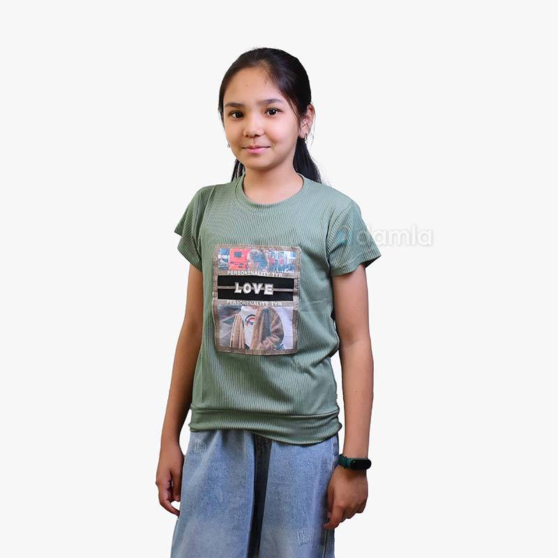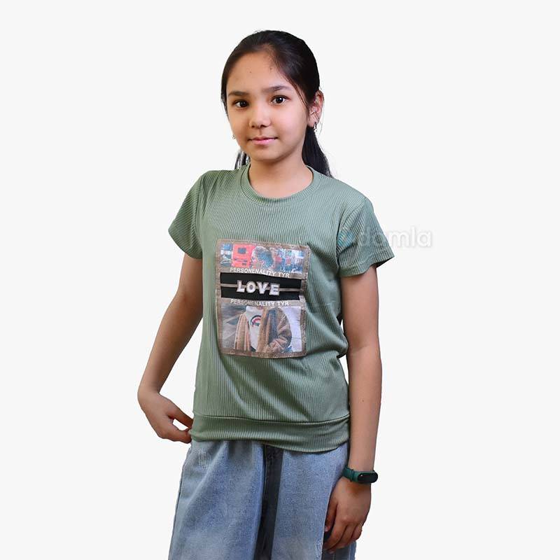 • Aýratynlyklary: Gyz çagalar üçin ýaşyl reňkli futbolka. Gyz çagalaryň tomusky futbolkasy, tomus üçin iň amatly warianty dem alýan materialdan tikilýär. Kelte ýeňli futbolka, yssy günüň aşagynda size kömek eder. Futbolkanyň ýüzünde harplar we surat bilen bezelen. Gündelik geýmek üçin rahat we ajaýyp saýlaw.