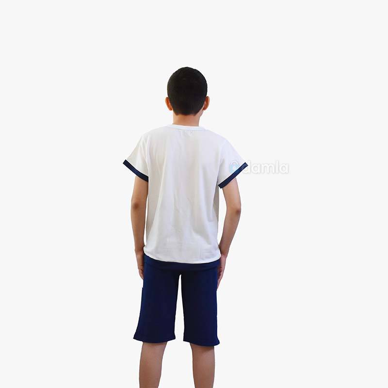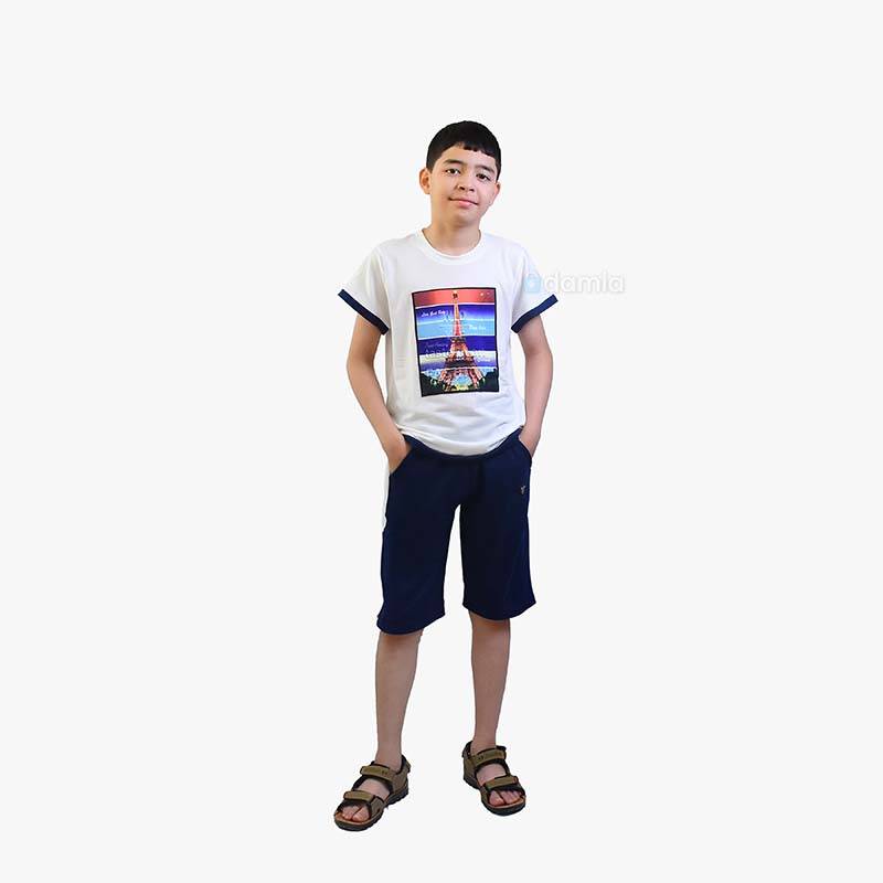 • Aýratynlyklary: Oglan çagalaryň tomusky komplekt eşigi, yssy tomus üçin iň amatly warianty dem alýan materialdan tikilýär. Kelte ýeňli, ak reňkli futbolka we goýy gök reňkli şortik, yssy günüň aşagynda size kömek eder. Futbolkanyň ýüzünde Pariž şekili bilen bezelen, şortigyň gyrasynda logojyk bilen bezelen. Şortigyň iki jübüsi bar. Dynç alyşda we gündelik geýmek üçin rahat hem ykjam we amatly eşik.