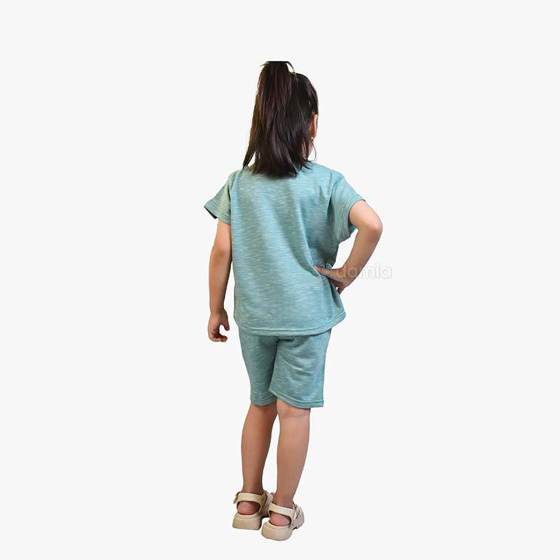 • Aýratynlyklary: Gyz çagalar üçin ýaşyl reňkli komplekt eşik. Kelte ýeňli, tegelek ýakaly we ýakasynda zynjyr bilen bezelen futbolka. Futbolkanyň ýüzünden tikin bilen bezelen. Bili rezinli, ýüzünden tikin bilen bezelen şortik. Gündelik geýmek üçin rahat we ajaýyp saýlaw.