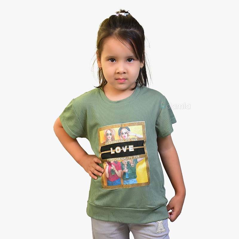 • Aýratynlyklary: Gyz çagalaryň tomusky futbolkasy, tomus üçin iň amatly warianty dem alýan materialdan tikilýär. Kelte ýeňli futbolka, yssy günüň aşagynda size kömek eder. Gyz çagalar üçin haki reňkli futbolka. Futbolkanyň ýüzünde harplar we surat bilen bezelen. Gündelik geýmek üçin rahat we ajaýyp saýlaw.