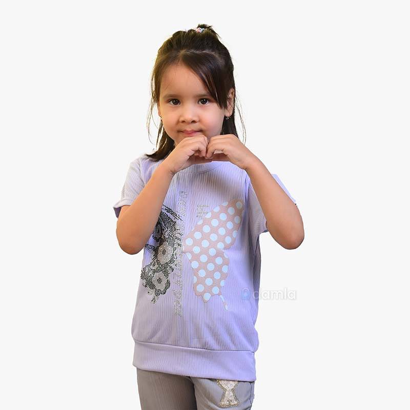 • Aýratynlyklary: Gyz çagalaryň tomusky futbolkasy, tomus üçin iň amatly warianty dem alýan materialdan tikilýär. Kelte ýeňli futbolka, yssy günüň aşagynda size kömek eder. Gyz çagalar üçin açyk mawy reňkli futbolka. Futbolkanyň ýüzünde harplar we kebelegiň şekili bilen bezelen. Gündelik geýmek üçin rahat we ajaýyp saýlaw.
