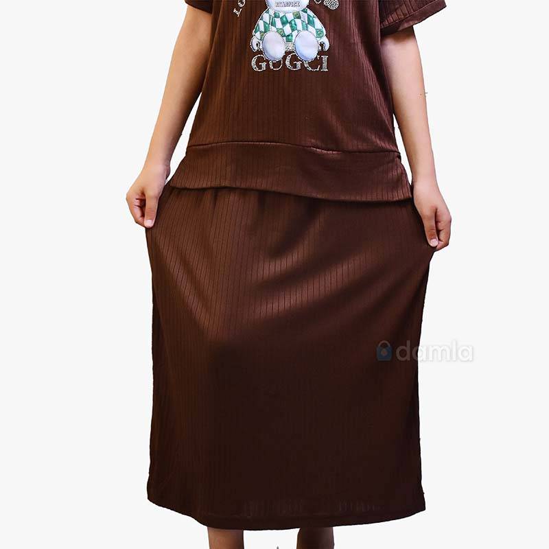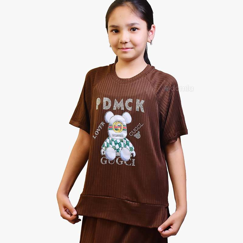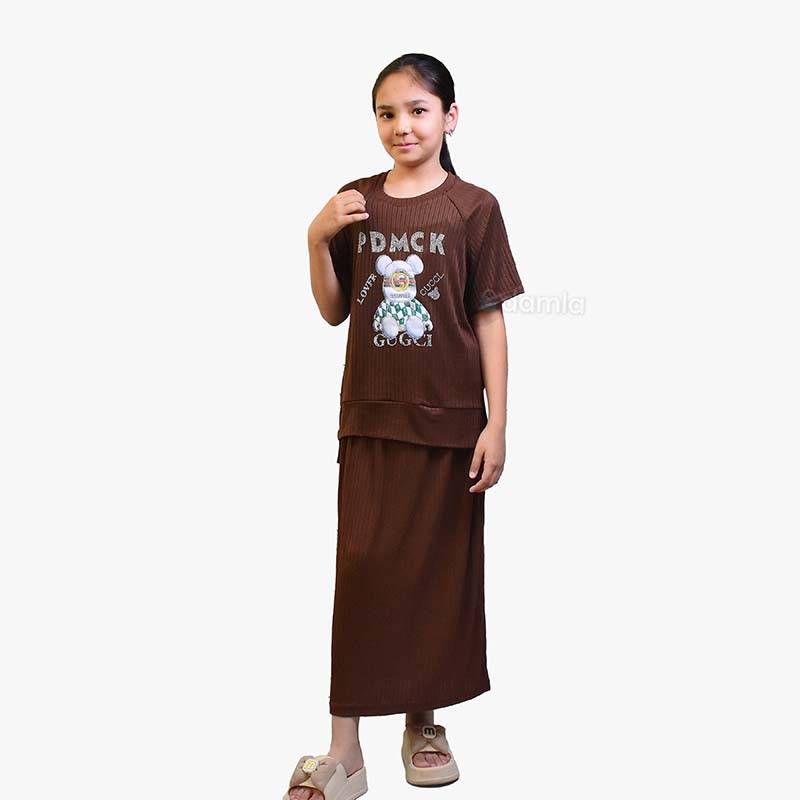 • Aýratynlyklary: Gyzlaryň tomusky komplekt eşigi, yssy tomus üçin iň amatly warianty dem alýan materialdan tikilýär. Kelte ýeňli, goýy mele reňkli futbolka we ýubka, yssy günüň aşagynda size kömek eder. Futbolkanyň ýüzünde owadan şekiller we harplar bilen bezelen. Ýubkanyň bili rezinli. Dynç alyşda we gündelik geýmek üçin rahat hem ykjam we amatly eşik.