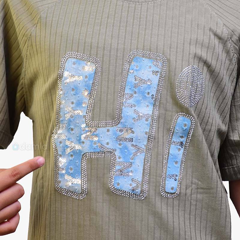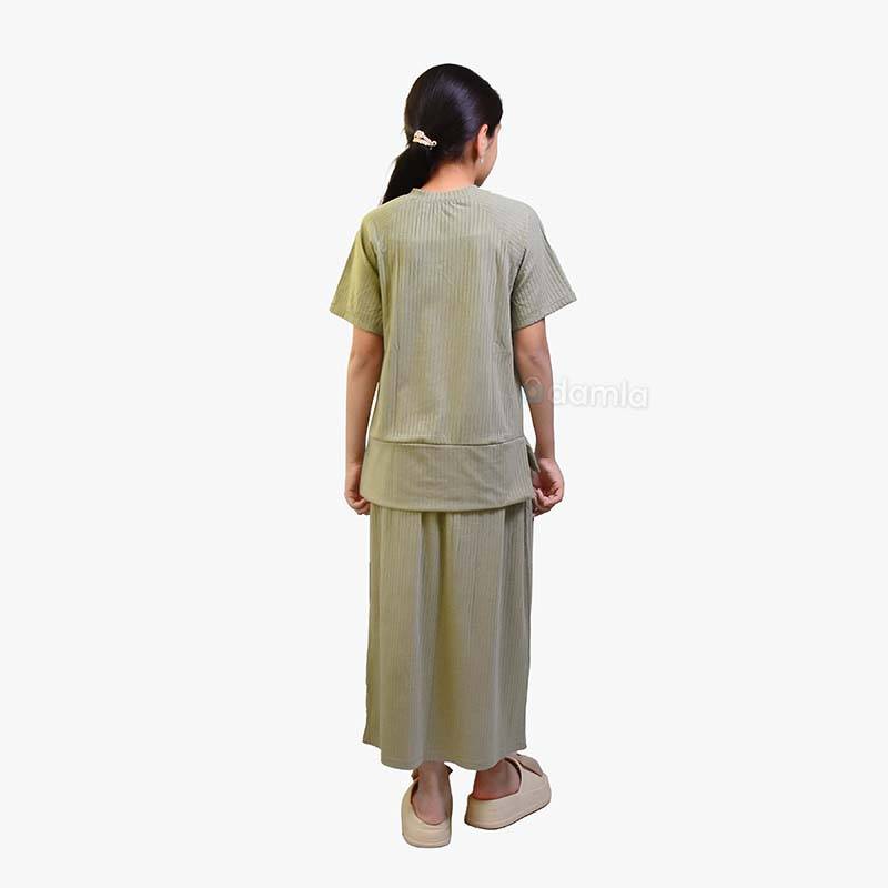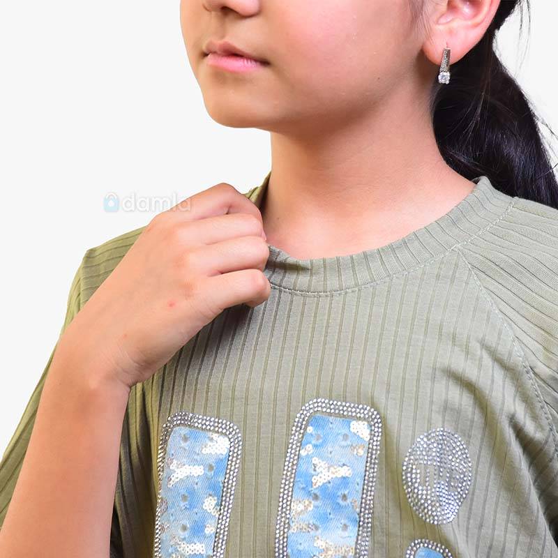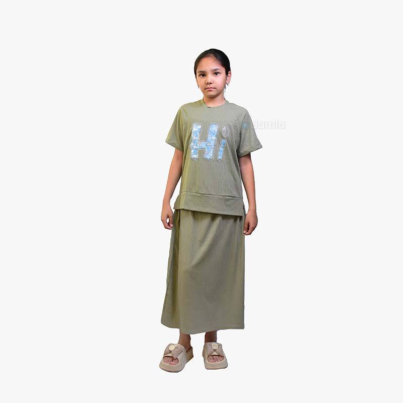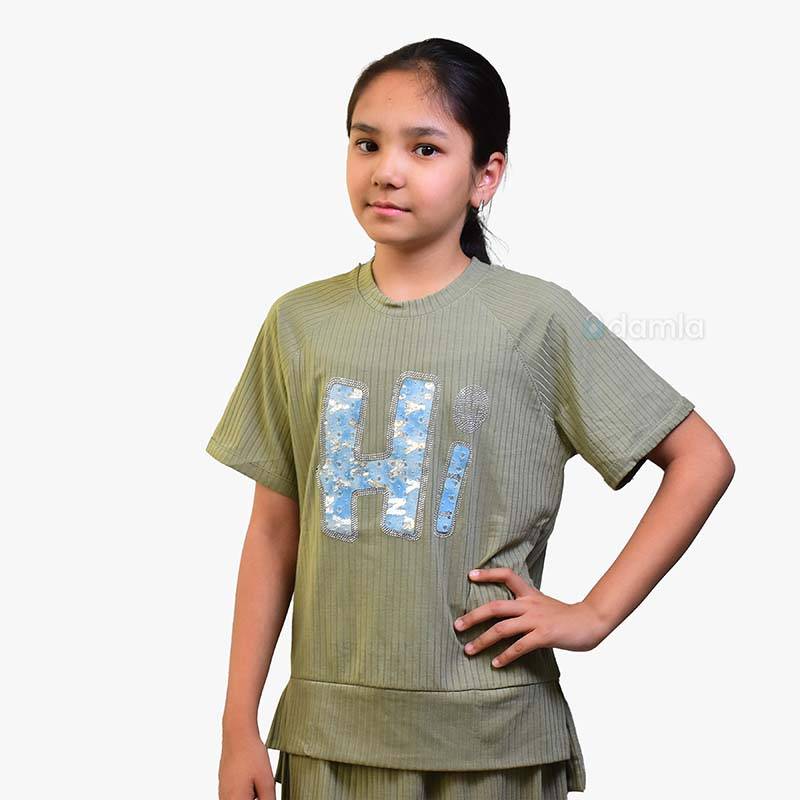 • Aýratynlyklary: Gyzlaryň tomusky komplekt eşigi, yssy tomus üçin iň amatly warianty dem alýan materialdan tikilýär. Kelte ýeňli, haki reňkli futbolka we ýubka, yssy günüň aşagynda size kömek eder. Futbolkanyň ýüzünde owadan gaşly harplar bilen bezelen. Ýubkanyň bili rezinli. Dynç alyşda we gündelik geýmek üçin rahat hem ykjam we amatly eşik.