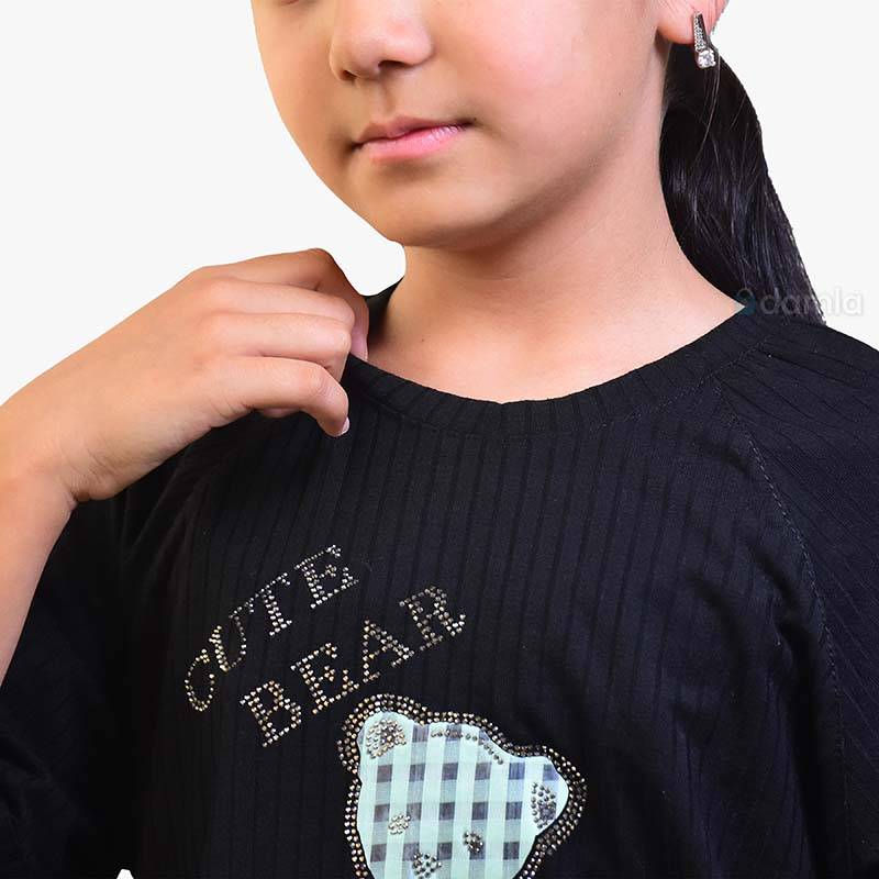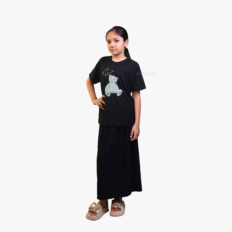 • Aýratynlyklary: Gyzlaryň tomusky komplekt eşigi, yssy tomus üçin iň amatly warianty dem alýan materialdan tikilýär. Kelte ýeňli, gara reňkli futbolka we ýubka, yssy günüň aşagynda size kömek eder. Futbolkanyň ýüzünde owadan gaşly harplar we şekiller bilen bezelen. Ýubkanyň bili rezinli. Dynç alyşda we gündelik geýmek üçin rahat hem ykjam we amatly eşik.