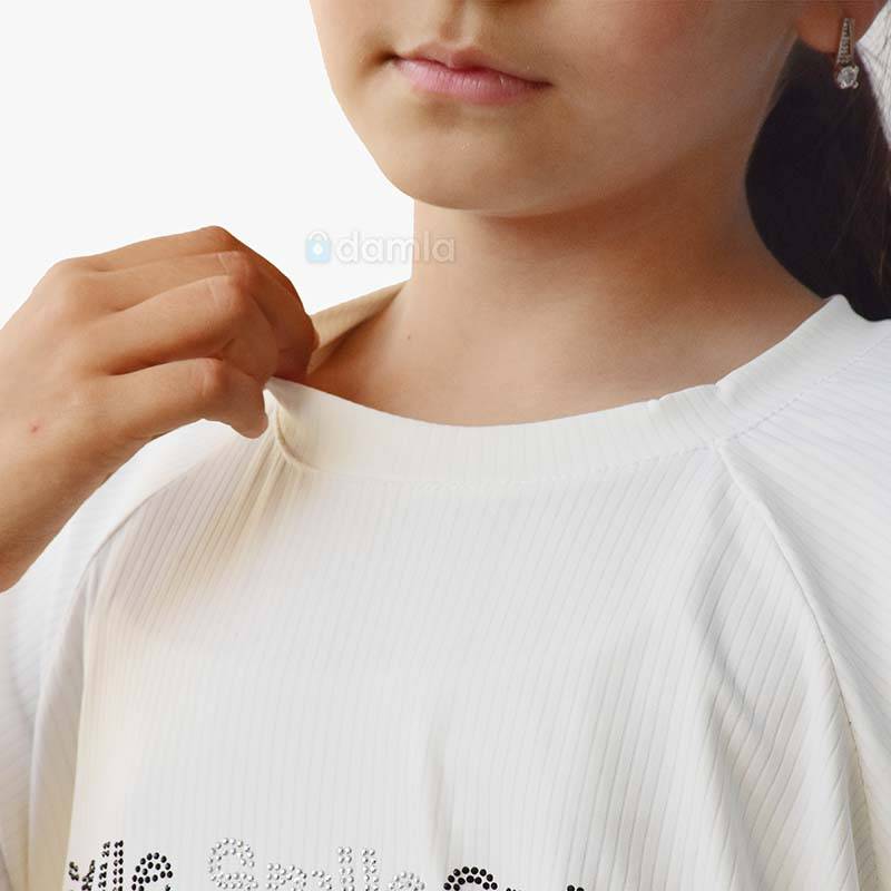 • Aýratynlyklary: Gyzlaryň tomusky futbolkasy, tomus üçin iň amatly warianty dem alýan materialdan tikilýär. Kelte ýeňli futbolka, yssy günüň aşagynda size kömek eder. Gyzlar üçin ak reňkli futbolka. Futbolkanyň ýüzünde harplar we şekiller bilen bezelen. Gündelik geýmek üçin rahat we ajaýyp saýlaw.