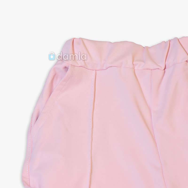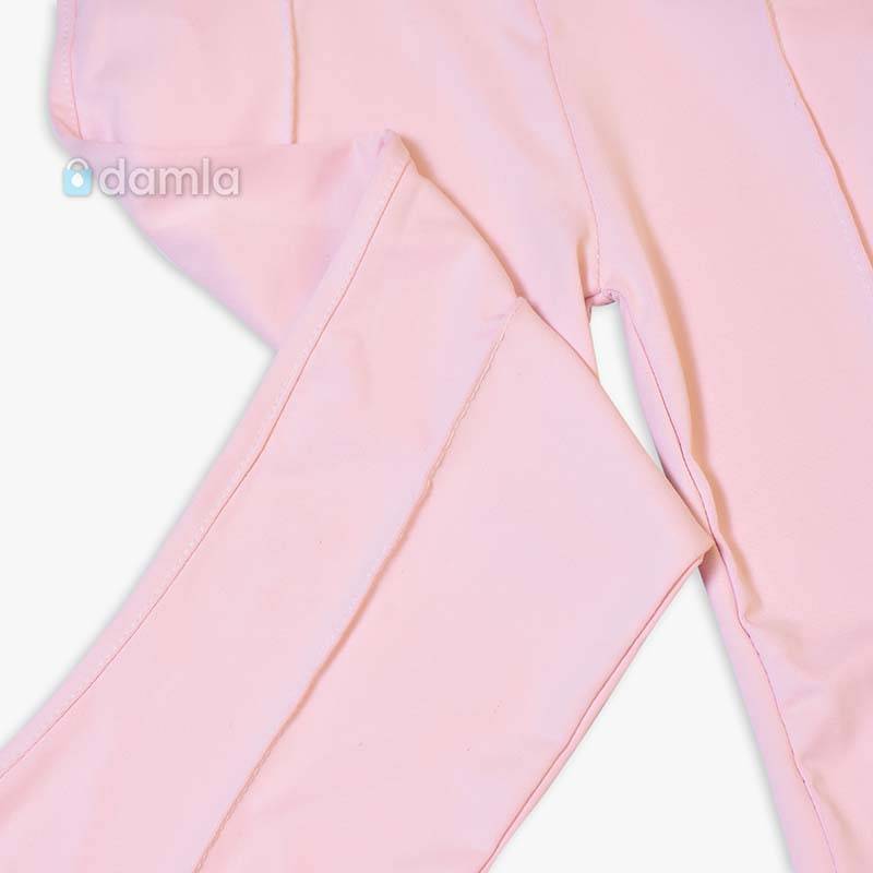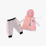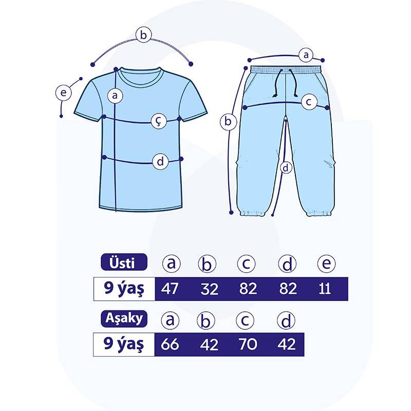 • Aýratynlyklary: Gyz çagalar üçin açyk gülgüne reňkli komplekt eşik. Kelte ýeňli, tegelek ýakaly we ýakasynda zynjyr bilen bezelen futbolka. Futbolkanyň ýüzünden tikin bilen bezelen. Bili rezinli, iki jübüli, ýüzünden tikin bilen bezelen balak. Gündelik geýmek üçin rahat we ajaýyp saýlaw.