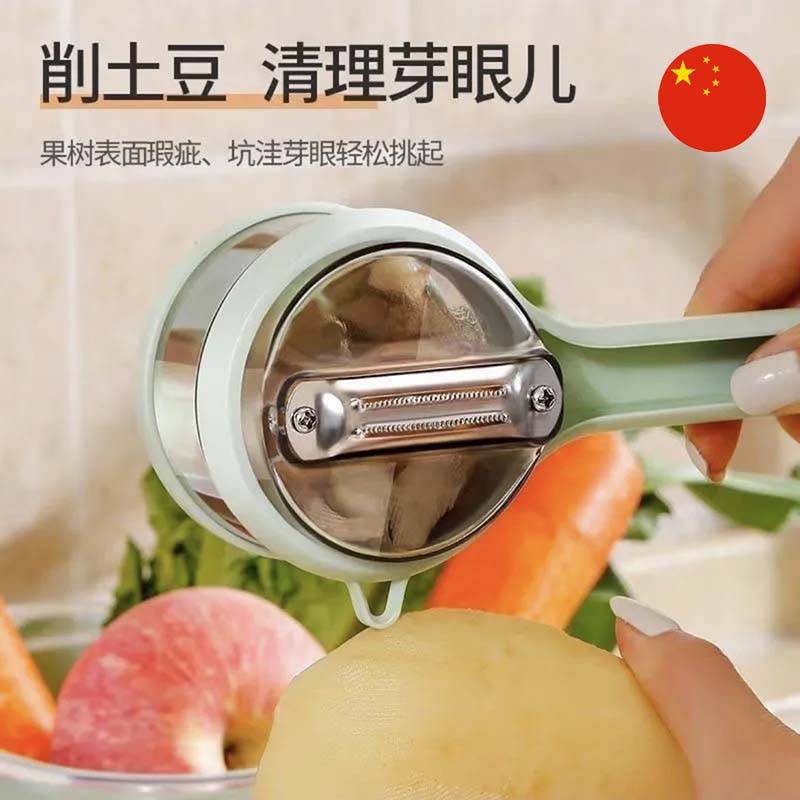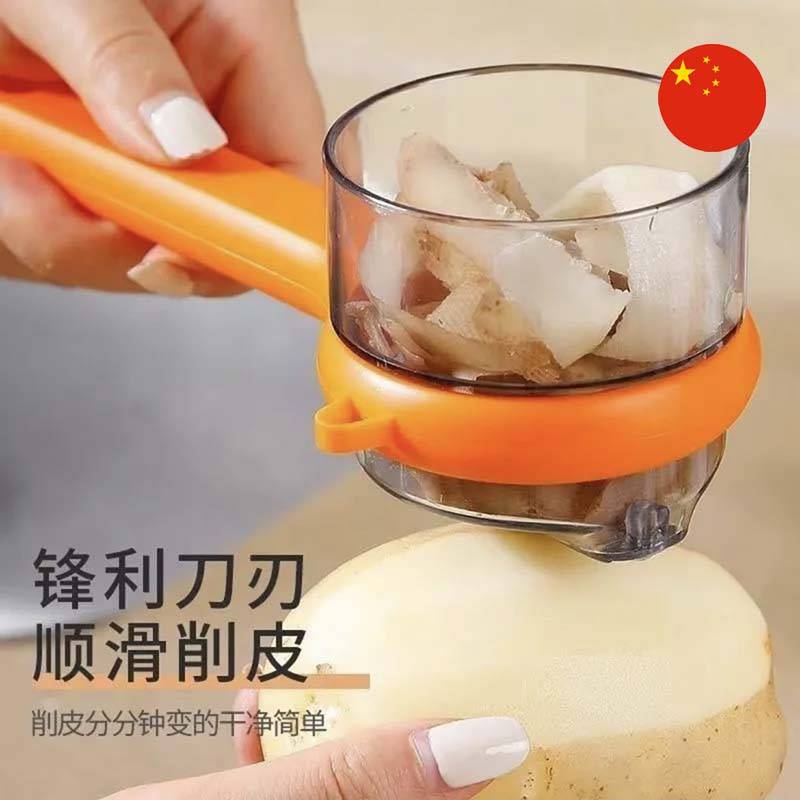 • Aýratynlyklary: Arassalanan gabyklar göni ýörite dury gaba düşüp, daş-töweregiň hapa bolmagynyň öňüni alýar. Ýokary hilli pyçagy hatda gaty gabyklary hem aňsatlyk bilen we ýukajyk edip arassalaýar. Ele oňaýly oturýar we uzak wagtlap ulananyňyzda hem eliňizi ýadatmaýar.
