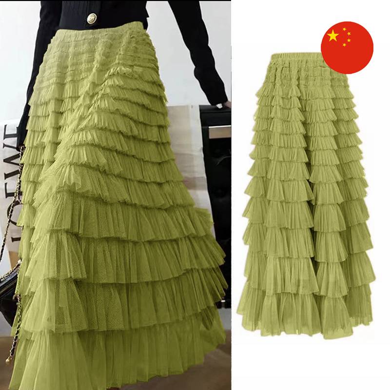 • Aýratynlyklary: Köp gatly, haki reňkli ýubka. Ýokary hilli ýumşak týul (setka) matadan tikilen. Elastik billi dizaýny rahatlygy üpjün edýär we hereket edeniňizde ajaýyp görnüş döredýär.