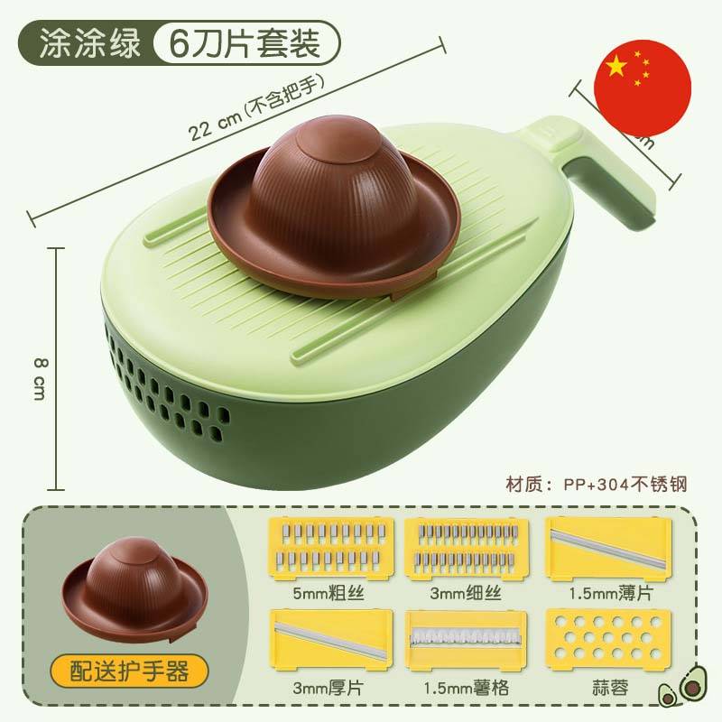 • Aýratynlyklary: Bir toplumda 6 sany dürli, çalşyrylýan pyçak (lezwiý) bar. Toplumda elleriňizi ýiti pyçaklardan goramak üçin ýörite tutawaç bar. Bu gök önümleriň iň soňky bölegine çenli howpsuz ulanmaga mümkinçilik berýär.