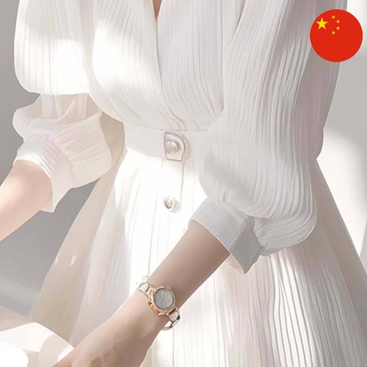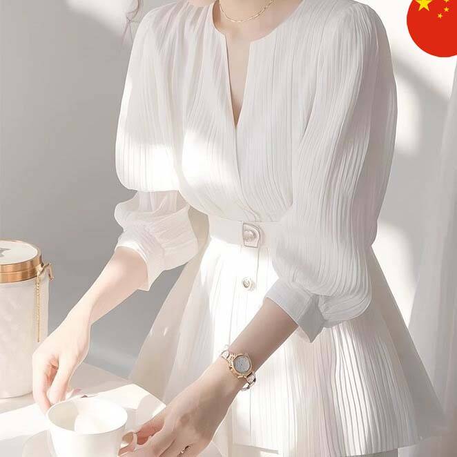 • Aýratynlyklary: Ak reňkli köýnek. Uzyn ýeňli, ýakasy V-şekilli kesim we aşagyndaky ilikler oňa gaýtalanmajak görk berýär. Rahat biçüwi hereketleriňizi çäklendirmez. Iş ýeri üçin hem, gündelik durmuş üçin hem ajaýyp saýlawdyr.