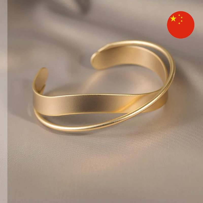 • Aýratynlyklary: Atanak görnüşli, biri giň we mat, beýlekisi inçe we ýalpyldawuk iki zolakdan ybarat. Açyk dizaýnly bilezik. Diametri 5.8 sm. Agramy 14.3 gram.