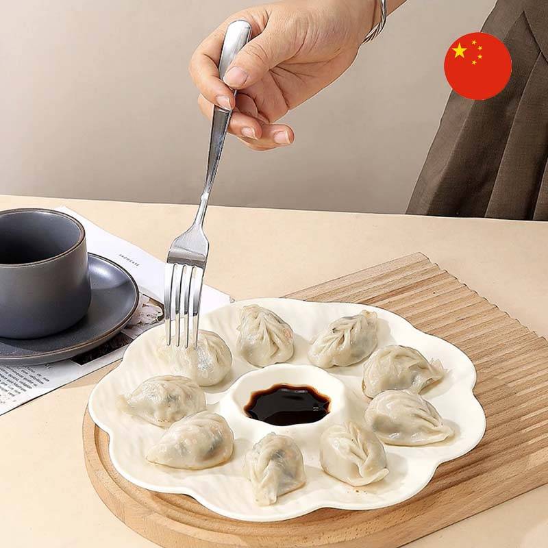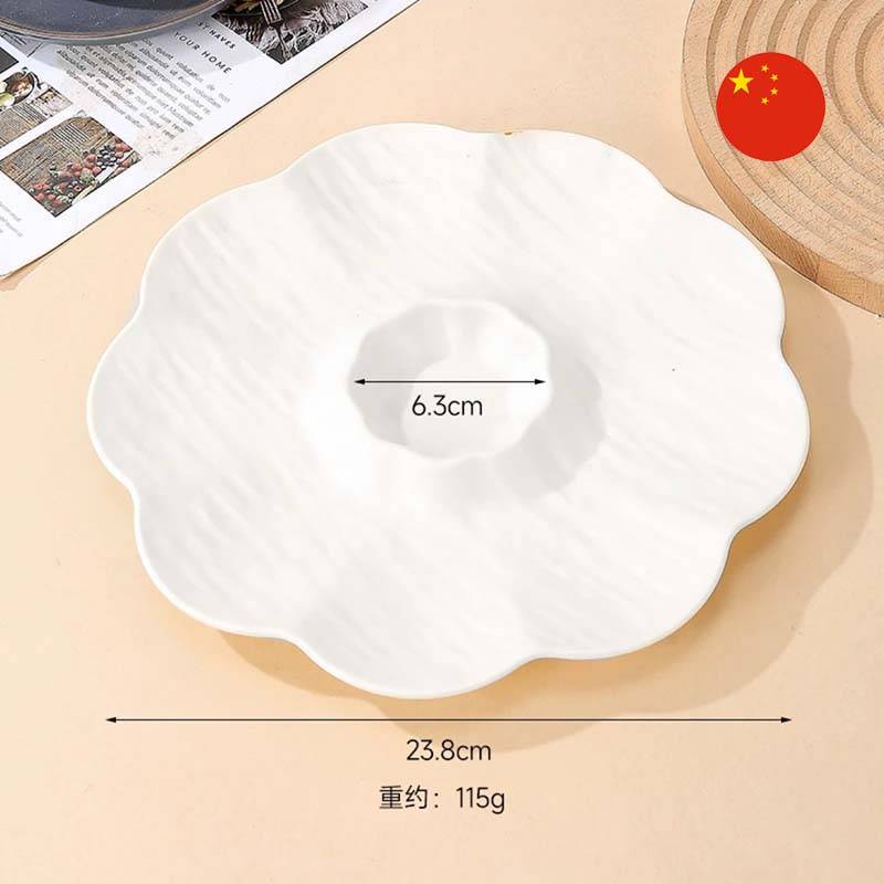 Aýratynlyklary: Pelmeni, Wareniki hyzmat etmek üçin ajaýyp we amaly tabak. Gül görnüşinde ýasalan, esasy tagam bilen garylmagynyň öňüni alýan sous üçin merkezi çuňbar. Ajaýyp stol düzmek we gündelik ulanmak üçin amatly. Ýyokary hilli plastmassadan ýasalan.