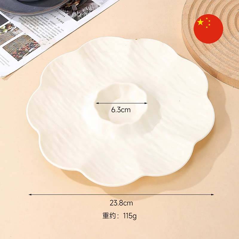 • Aýratynlyklary: Manty, Wareniki hyzmat etmek üçin ajaýyp we amaly tarelka. Gül görnüşinde ýasalan, esasy tagam bilen garylmagynyň öňüni alýan sous üçin merkezi çuňbar. Ajaýyp stol düzmek we gündelik ulanmak üçin amatly. Ýyokary hilli plastmassadan ýasalan.