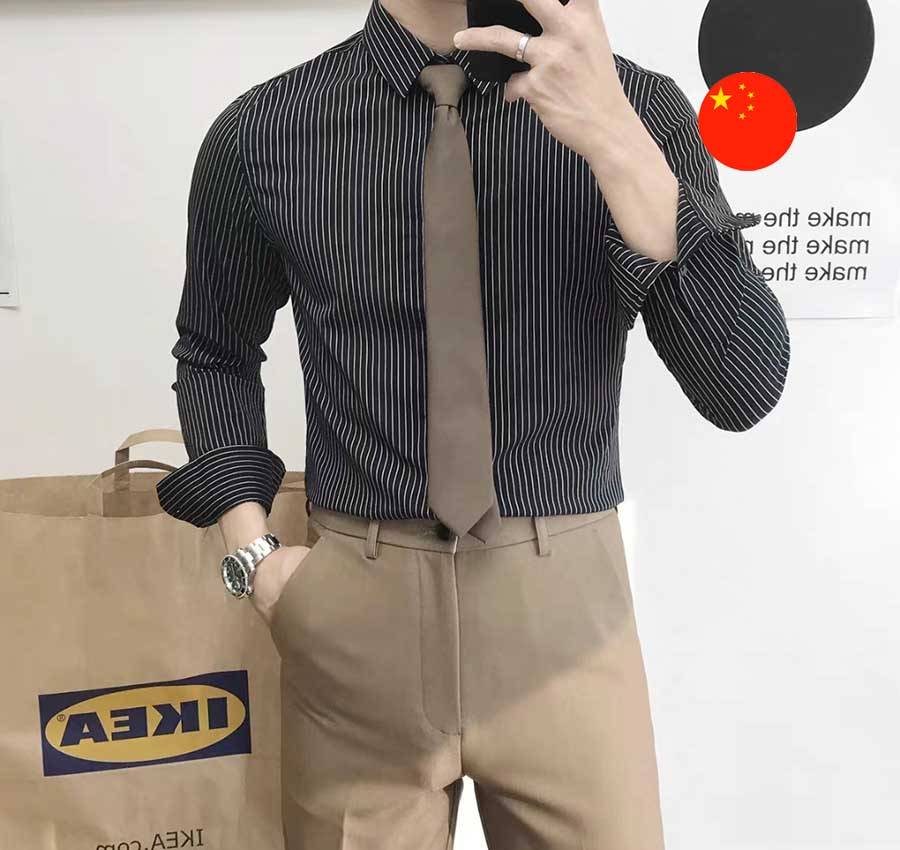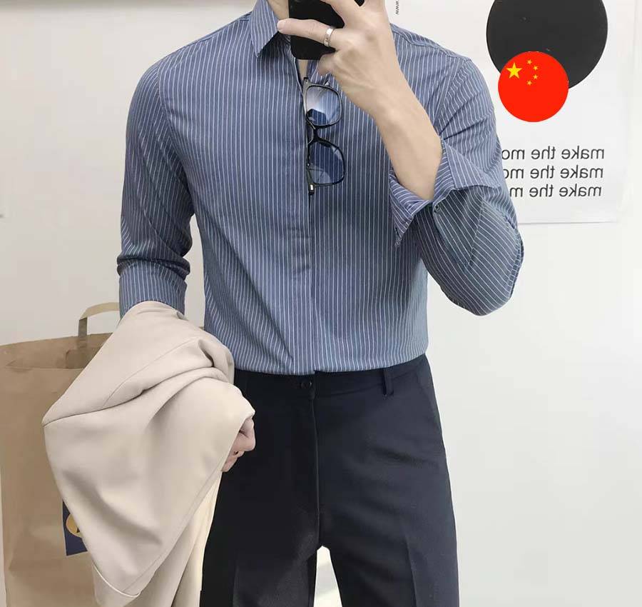 • Aýratynlyklary: Uzyn ýeňli we ajaýyp ýakaly nusgawy erkekler üçin gök reňkli köýnek, ajaýyp inçe dik çyzyklardan tikilen. Iş ýa-da häzirki zaman görnüş döretmek üçin amatly.