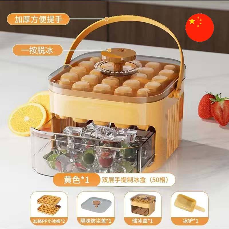 • Aýratynlyklary: 50 buz öýjügi bilen enjamlaşdyrylan mele reňkdäki iki gatly buz çüýşesi. Onda amatly göteriji tutawaç we buz kublaryny çalt çykarmak üçin ýörite mehanizm bar. Iýmit bilen aragatnaşyk üçin ygtybarly iýmit derejesindäki materiallardan ýasalýar.