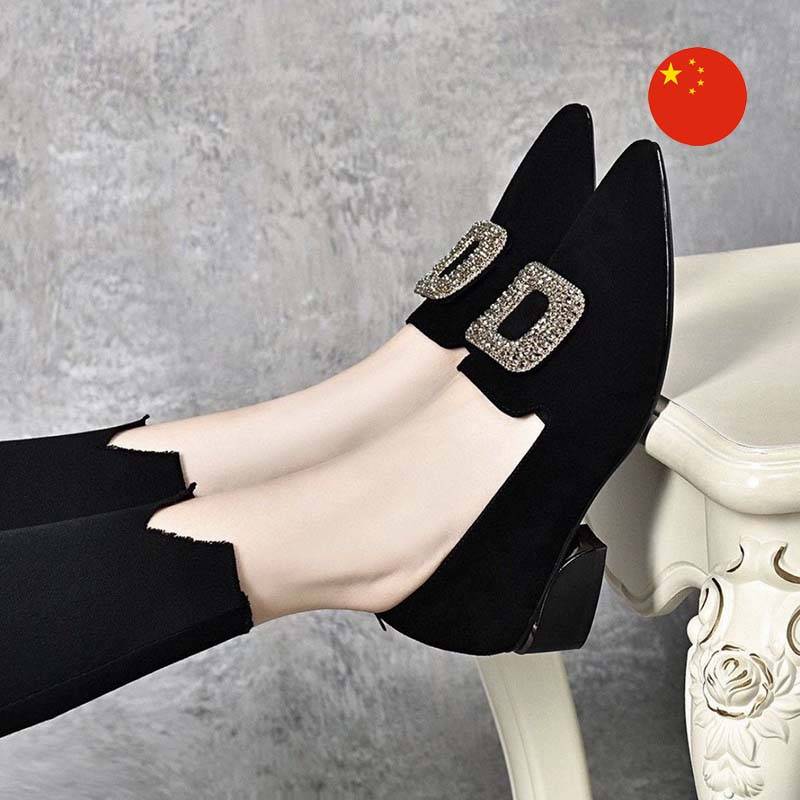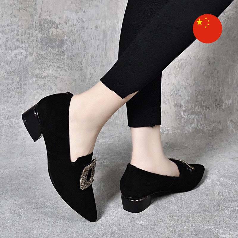 • Aýratynlyklary: Uçly we gara inedördül ökçeli ajaýyp gara zenanlar üçin aýakgap. Bu aýakgaplar zamuž materýallardan we rahatlygy we nepisligini üpjün edýän kiçijik pes ökçesi bolan materialdan ýasalýar. Ajaýyp degmek bilen iş ýa-da tötänleýin görnüş döretmek üçin amatly.