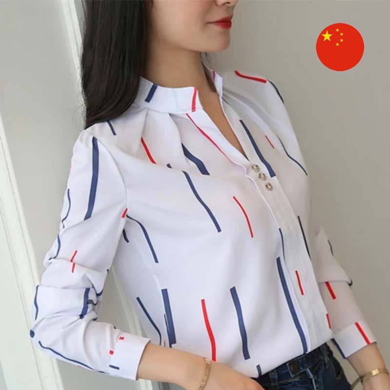 • Aýratynlyklary: Zenanlar üçin uzyn ýeňli köýnegi. Ak, gyzyl we gök dik zolaklar bilen. V-ýakaly. Gündelik ýa-da ofis stili üçin ajaýyp.