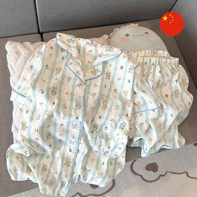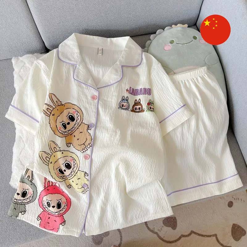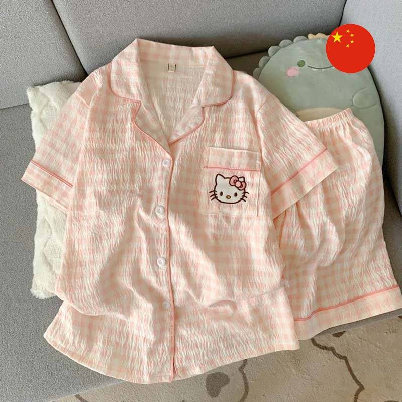 • Aýratynlyklary: Zenanlar üçin rahat we ajaýyp iki bölekli pižama. Gysga düwmejik köýnek we şortikleri öz içine alýar. Gülgüne bezegli mawy reňkli we meşhur "Hallo Kity" keşbiniň ajaýyp yzlary bilen bezelendir. Öýde ýatmak we dynç almak üçin amatly.