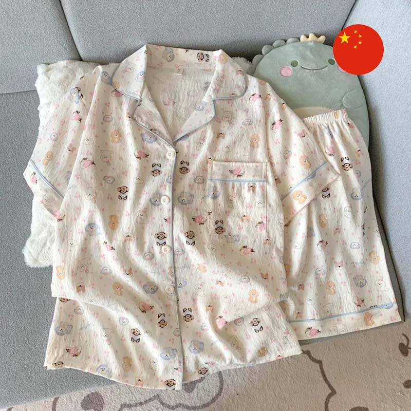 • Aýratynlyklary: Zenanlar üçin rahat we ajaýyp iki bölekli pižama. Gysga düwmejik köýnek we şortikleri öz içine alýar. Ak reňkli we meşhur "Hallo Kity" keşbiniň ajaýyp yzlary bilen bezelendir. Öýde ýatmak we dynç almak üçin amatly.