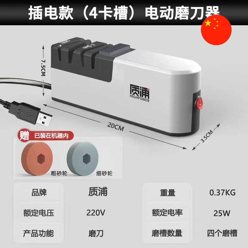 • Aýratynlyklary: Setden işleýän, güýçli we ykjam elektrikli pyçak ýitileýji. Enjam ýitilemek üçin dört sany bölüm bilen enjamlaşdyrylan, bu bolsa tygyň gödek hem-de inçe ýylmanmasyny ýerine ýetirmäge mümkinçilik berýär. Dürli görnüşdäki aşhana pyçaklary üçin laýyk gelýär. Kiçijik ölçegleri sebäpli, aňsatlyk bilen saklanýar we aşhanada köp ýer tutmaýar.