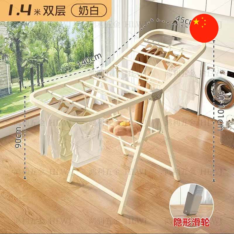 • Aýratynlyklary: Ykjam we giň kir guradyjy. Iki gatly gurluşynyň kömegi bilen, ol köp mukdarda eşik ýerleşdirmäge mümkinçilik berýär. Onuň umumy uzynlygy 1.4 metr we beýikligi 90 sm. Öýde aňsatlyk bilen hereket etdirmek üçin gizlin tigirjikler bilen enjamlaşdyrylan.