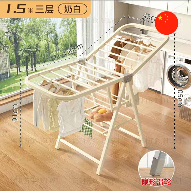 • Aýratynlyklary: Ykjam we giň kir guradyjy. Iki gatly gurluşynyň kömegi bilen, ol köp mukdarda eşik ýerleşdirmäge mümkinçilik berýär. Onuň umumy uzynlygy 1.5 metr we beýikligi 91 sm. Öýde aňsatlyk bilen hereket etdirmek üçin gizlin tigirjikler bilen enjamlaşdyrylan.
