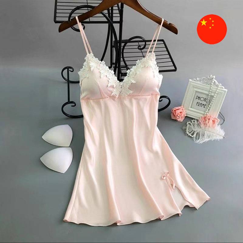 • Aýratynlyklary: Inçe gaýyşly nepis atlas gijeki köýnek nepisligi we rahatlygy birleşdirýär. Ýokarky bölegi kontrastly ak kružewa bilen bezelen. Modelinde içinden oturdylan ýumşak çaşkalar bar, bu bolsa ony has-da oňaýly edýär. Kiçijik ýarykly we bantikli gysga etegi oňa aýratyn bir özüne çekijilik goşýar.