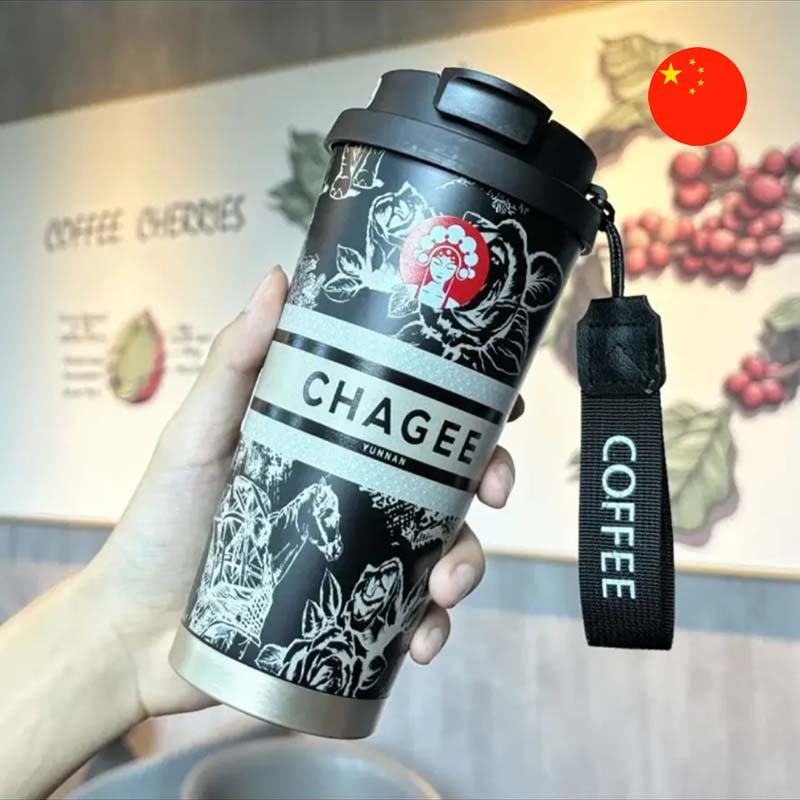 • Aýratynlyklary: "Chagee" brendiniň termokružkasy stilini gara reňkde bolup, ak gül nagyşy we logotipi bilen bezelendir. Kružkanyň göwrümi 580 ml we ol gyzgyn hem-de sowuk içgiler üçin niýetlenendir. Onuň götermek üçin "COFFEE" ýazgyly oňaýly gaýyşy, şeýle hem içmek üçin deşigi bolan gapagy bar.