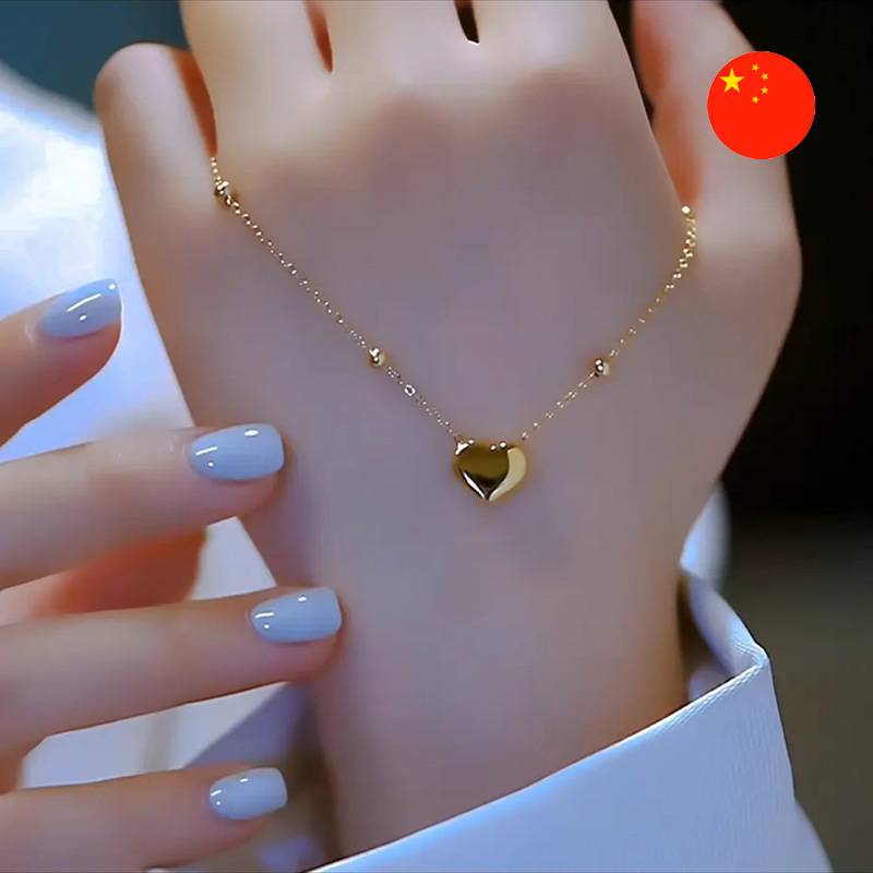 • Aýratynlyklary: Nepis bezeg altyn reňkde ýasalyp, ýalpyldawuk ýürek görnüşli asma şaýly inçe zynjyrdan ybaratdyr. Suratynda görkezilişi ýaly, bilezik hökmünde elde dakynmak üçin niýetlenendir. Bezegiň gündelik dakynmak üçin amatly, ýönekeý we elegant dizaýny bar.