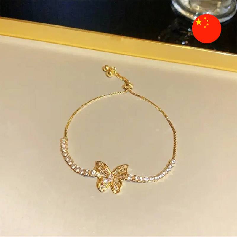 • Aýratynlyklary: Näzik we elegant bilezik, siziň keşbiňize ýeňillik we nepislik goşar. Onuň merkezi elementi — ganatlary bezegä baý görnüş berýän ýalpyldawuk kristallar bilen bezelen nepis kebelekdir. Kebelegiň iki tarapyndaky bilezigiň inçe zynjyry hem üznüksiz ýalpyldy döredip, ownuk kristallaryň hatary bilen bezelen. Bilezik tomusky we agşamky lybaslar bilen ideal sazlaşýan ýyly altyn reňkde ýerine ýetirilen.
