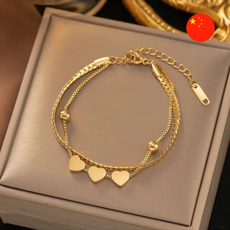 • Aýratynlyklary: Iki sany inçe zynjyrdan ybarat bolan bilezik. Olaryň biri klassiki, ikinjisi bolsa bilekde owadan ýerleşýän ýürek görnüşindäki üç sany ýylmanak asma şaý bilen bezelen.