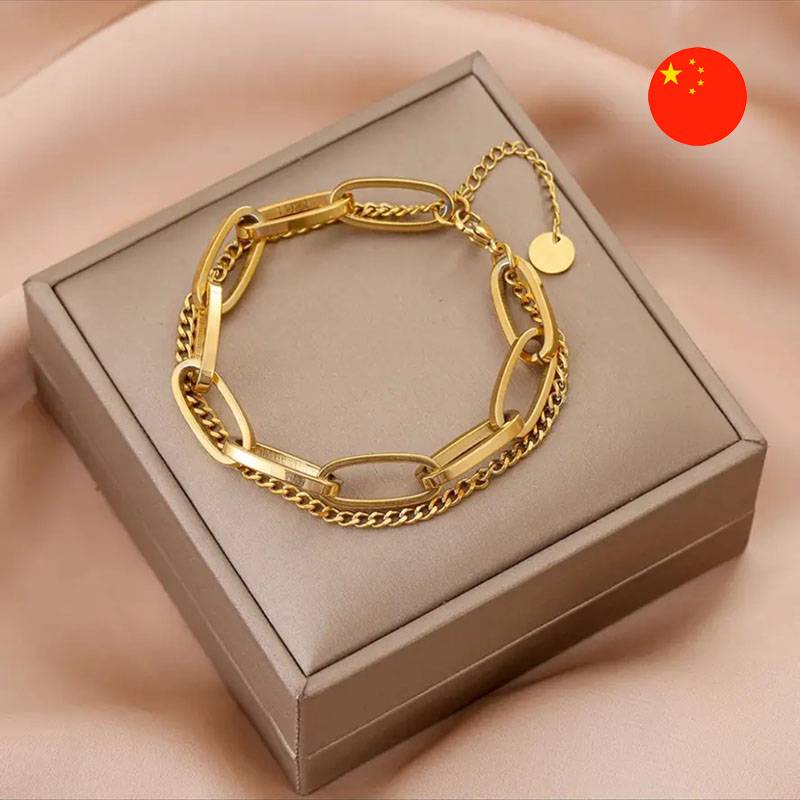 • Aýratynlyklary: Wajyplygy we nepisligi özünde ideal jemleýän täsirli iki gatly bilezik. Ol bir bezegde birleşdirilen iki aýry zynjyrdan ybarat.