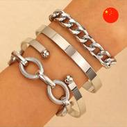 • Aýratynlyklary: Dürli stilleri özünde ideal jemleýän täsirli we adaty bolmadyk bilezik. Bezeg iki bölekden ybarat: bir ýarysy uly halkaly klassiki, uly göwrümli zynjyr görnüşinde, ikinjisi bolsa — nepis, inçe iki hatarly zynjyrdan ybarat. Bilezigiň merkezinde esasy aksiýa ýerleşýär.