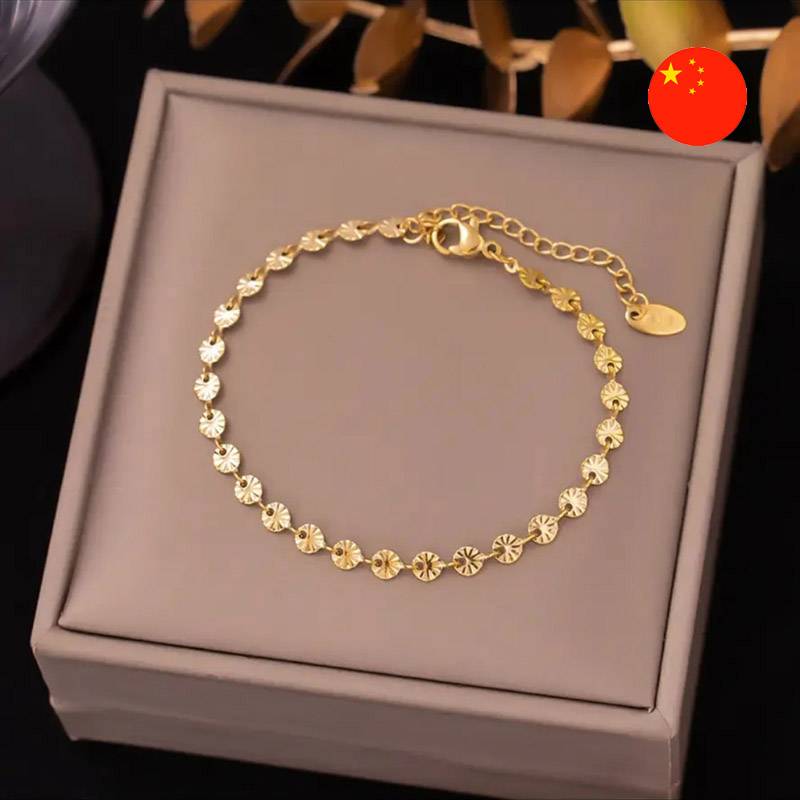 • Aýratynlyklary: Islendik keşbe nepislik goşjak bilezik. Ol köp sanly kiçijik tegelek diskler bilen bezelen inçe zynjyr görnüşinde ýerine ýetirilendir.