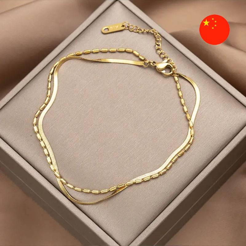 • Aýratynlyklary: Bilezik iki zynjyrdan ybarat. Olaryň biri ýylanyň derisini imitasiýa edýän ýylmanak, ikinjisi bolsa — örülen. Berkidijisi — adaty karabin. Bilezik örän elegant we stil görünýär. Ol gündelik keşp üçin-de, agşamky çykyş üçin-de laýyk geler.