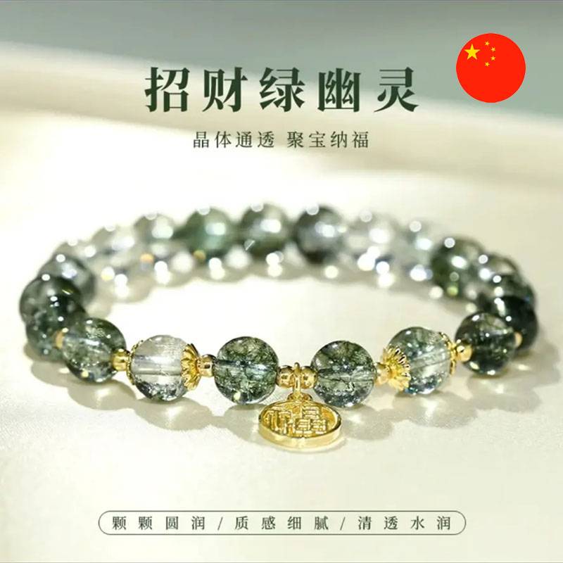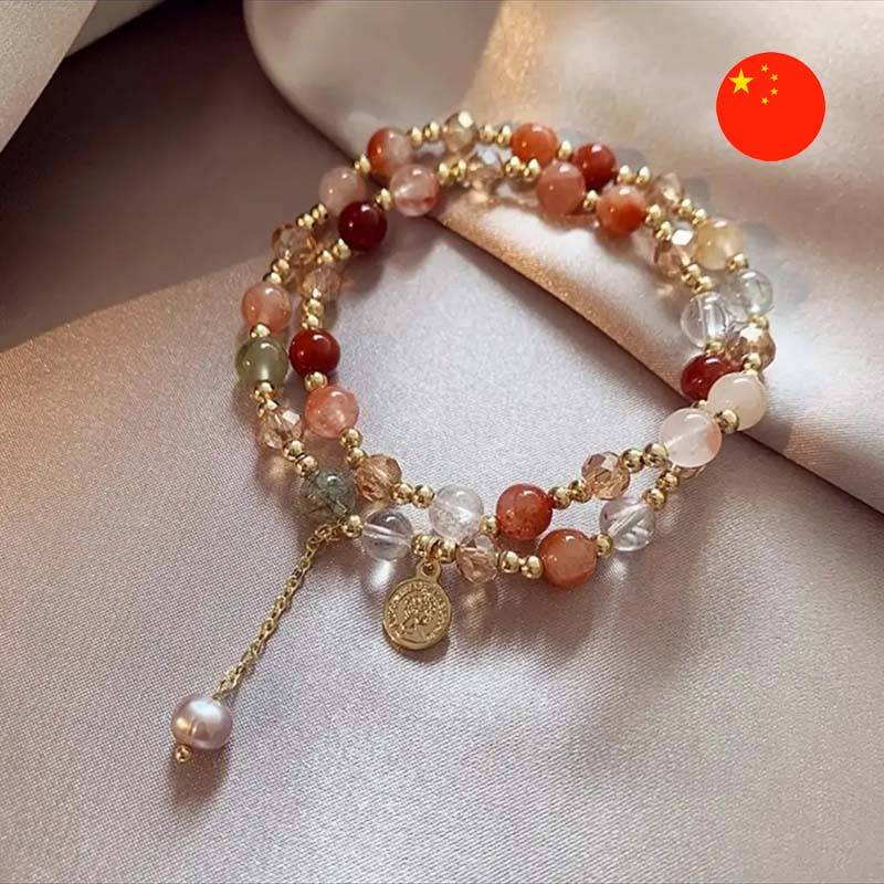 • Aýratynlyklary: Bilezik iki zynjyrdan ybarat bolup, olaryň üstünde dürli reňkdäki — dury reňkden başlap gyzylymtyl-goňur reňklere çenli — tebigy daşlardan ýasalan monjuklar düzülen. Bilezigiň üstünde asma şaýlar hem bar: biri — merjen görnüşinde, ikinjisi — oýulyp ýazylan tegelek. Berkidijisi — adaty karabin.