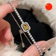 • Aýratynlyklary: Dört altyn bilezik. Ilkinji bilezik ownuk ýalpyldawuk çybyklar bilen bezeldi. Ikinji bilezik, ortasyna tekiz metal goýlan biri-birine bagly baglanyşyklardan durýar.