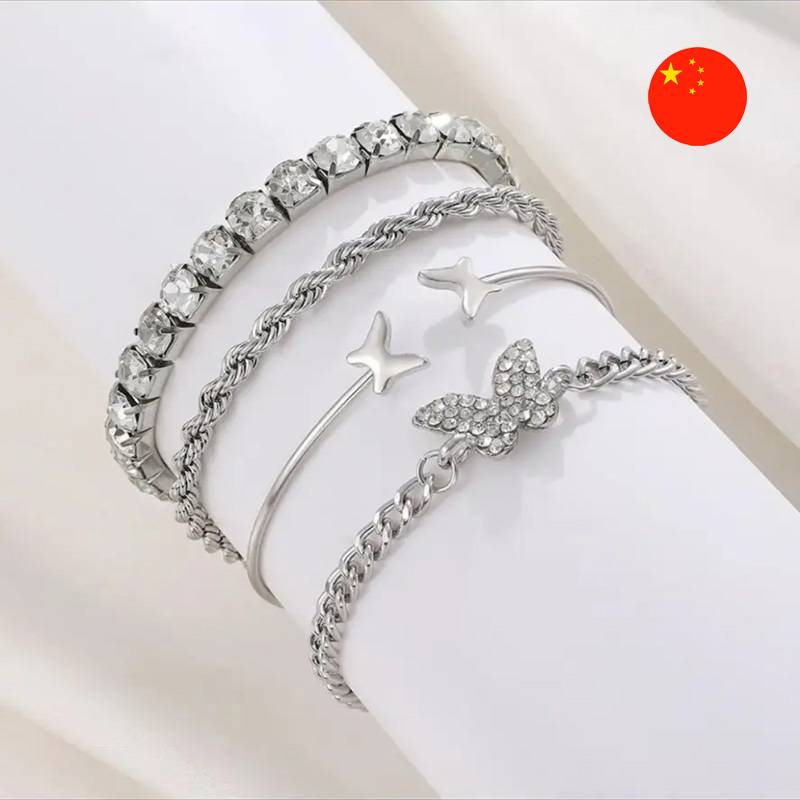 • Aýratynlyklary: Dört sany kümüş bilezik. Ilkinji bilezik uly ýalpyldawuk çybyklar bilen örtülen ullakan zynjyrdyr. Ikinji bilezik biri-birine bagly baglanyşyklardan durýar.