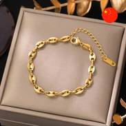 • Aýratynlyklary: Minimalistik altyn bilezik. Iki inçe zynjyrdan durýar. Olaryň biri bilezige goşmaça öwüşgin berýän kiçijik toplar bilen bezelipdir. Berkidiji adaty kerwen. Bu bilezik gaty çylşyrymly we owadan görünýär. Gündelik eşikler we has resmi ýagdaýlar üçin amatly.