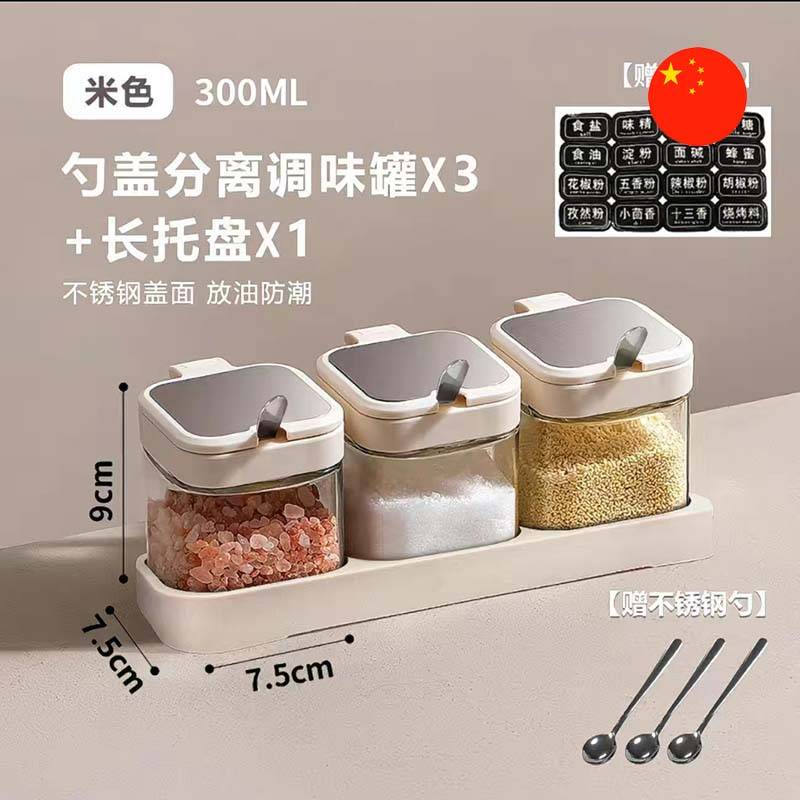• Aýratynlyklary: Bu, her biriniň göwrümi 300 ml bolan, ysly zatlar üçin niýetlenen üç sany gapdan ybarat toplumdyr. Gaplar poslamaýan polatdan ýasalan gapaklar bilen üpjün edilen we açyk sary (bežewyý) reňke boýalan. Toplumyň içinde uzyn podnos, üç sany çemçe hem-de dürli ýazgylary ýelmemek üçin niýetlenen ýelmenýän ýazgylar toplumy bar. Gaplaryň dizaýny çyga we ýaga garşy durmak üçin ýörite işlenip düzülendir.