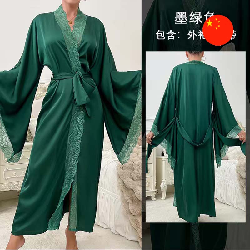• Aýratynlyklary: Elegant we stil halat. Bedene örän ýakymly, ýokary hilli ýüpekden taýýarlanan. Ýeňleri we gyralary nepis kružewa bilen bezelen. Öýde dynç almak, romantik keşp döretmek ýa-da sowgat hökmünde ajaýyp sazlaşar. Toplumda ony sazlamak üçin guşak bar.